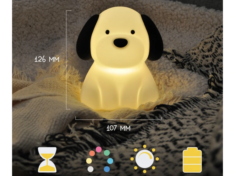Nočné svetlo MegaLight Benny Beagle v podobe rozkošného psíka poskytne vášmu dieťaťu pocit bezpečia a pokojný spánok od narodenia. Vďaka hravému dizajnu sa stane aj krásnou dekoráciou detskej izby. Jednoduché ovládanie dotykom a farebné možnosti prispôsobia svetlo potrebám vášho dieťaťa.