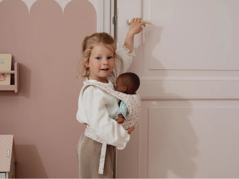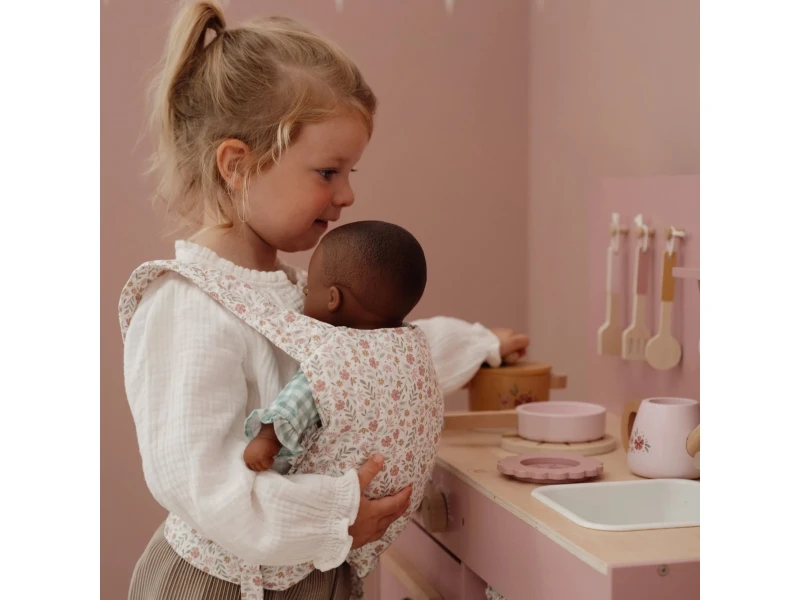 S nosičom pre bábiky Little Dutch Soft Flowers si deti môžu vziať svoju obľúbenú bábiku alebo plyšového kamaráta kamkoľvek so sebou. Vďaka nastaviteľným ramenným popruhom a pevnému bedrovému pásu sedí bábika bezpečne a pohodlne. Deti si tak môžu vyskúšať nosenie ako „naozajstní rodičia“ – buď čelom k sebe, alebo čelom dopredu. Hra s nosičom podporuje fantáziu, empatiu aj sociálne zručnosti.