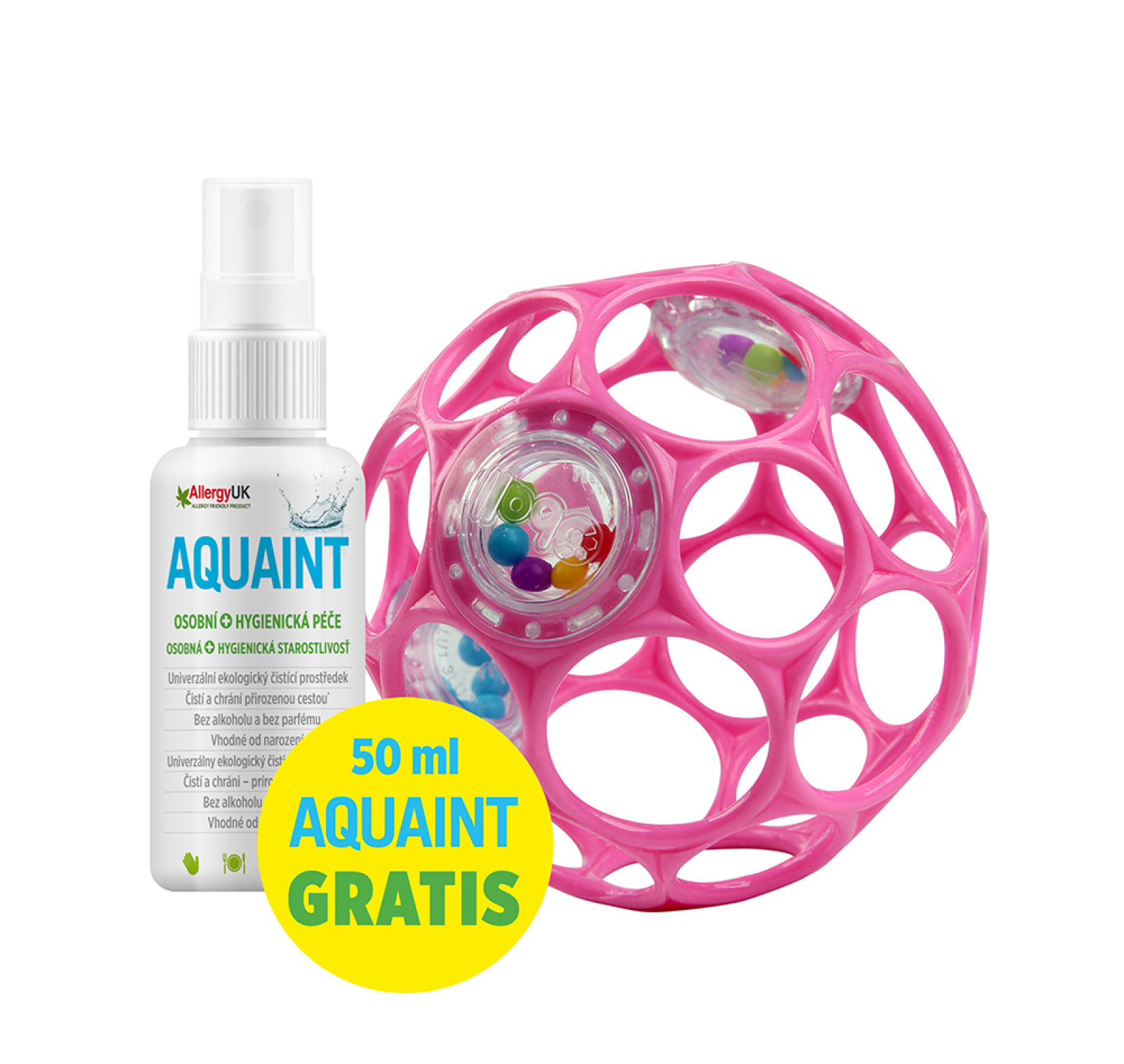 OBALL Hračka Oball RATTLE 10 cm dark pink 0m+AQUAINT 100% ekologická čistiaca voda 50 ml