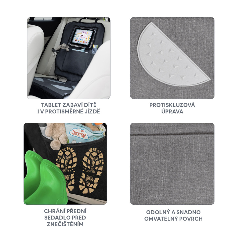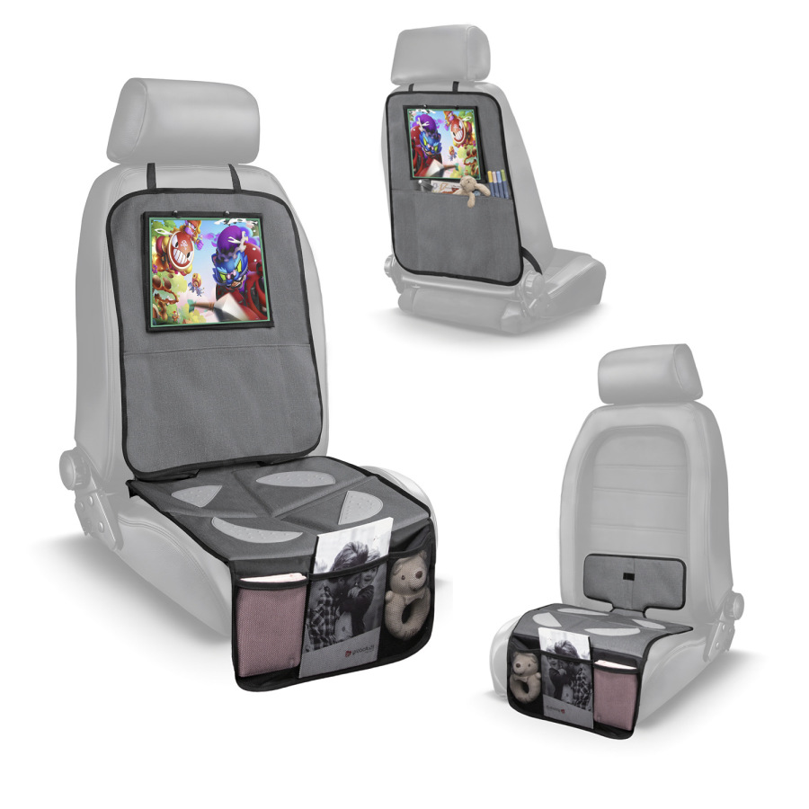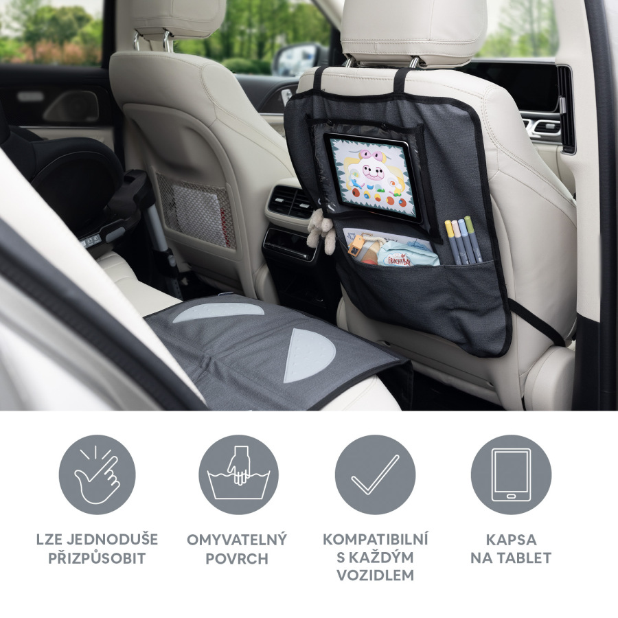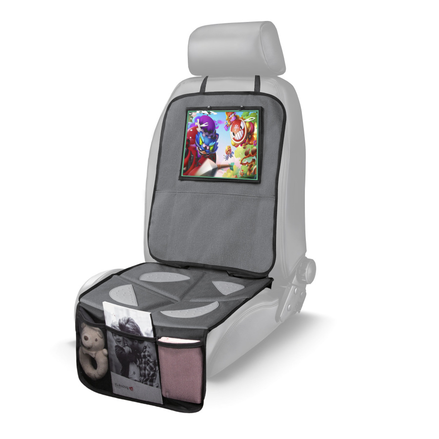 Ochrana sedadlá pod autosedačku s vreckom na tablet umývateľný, Grey