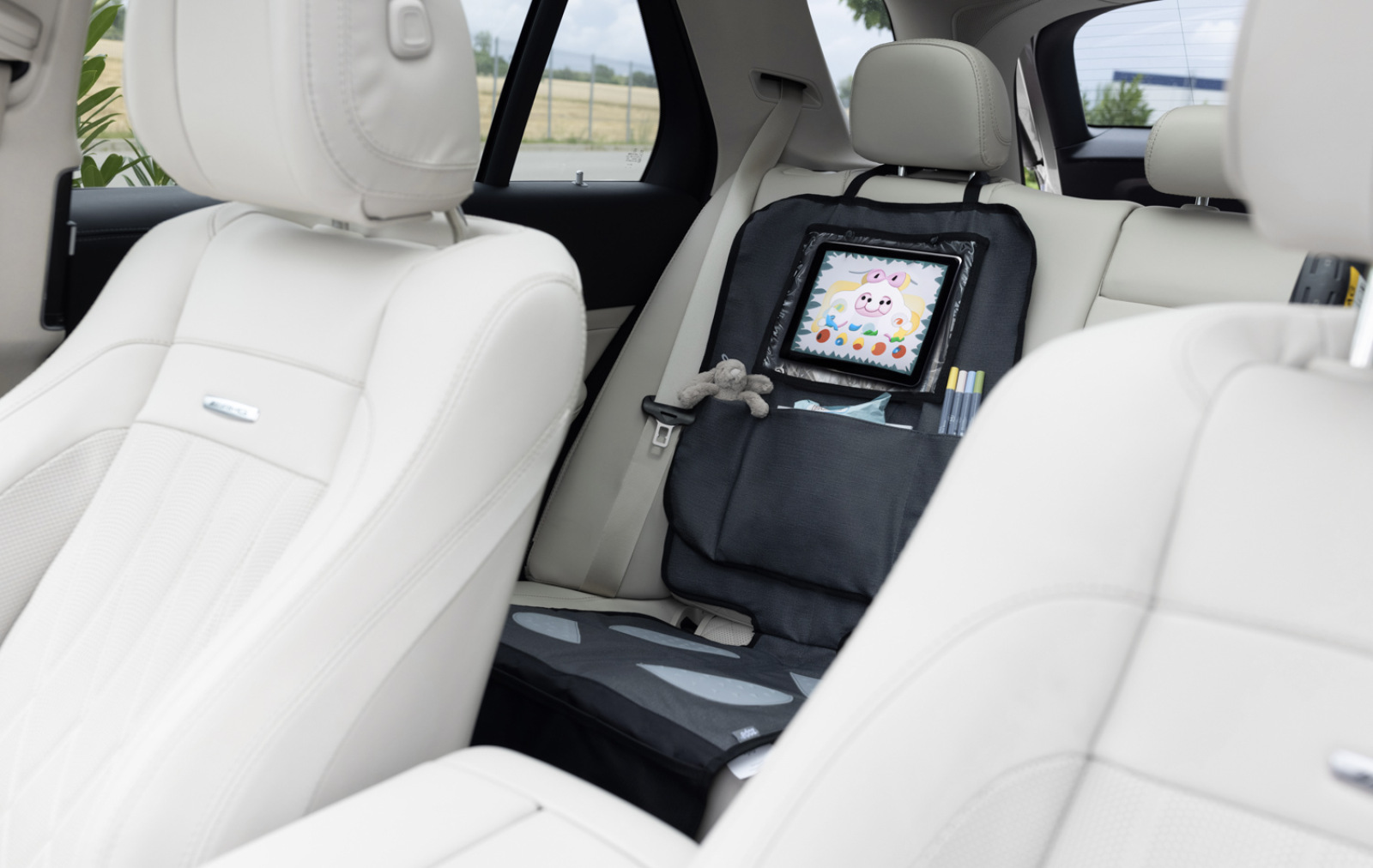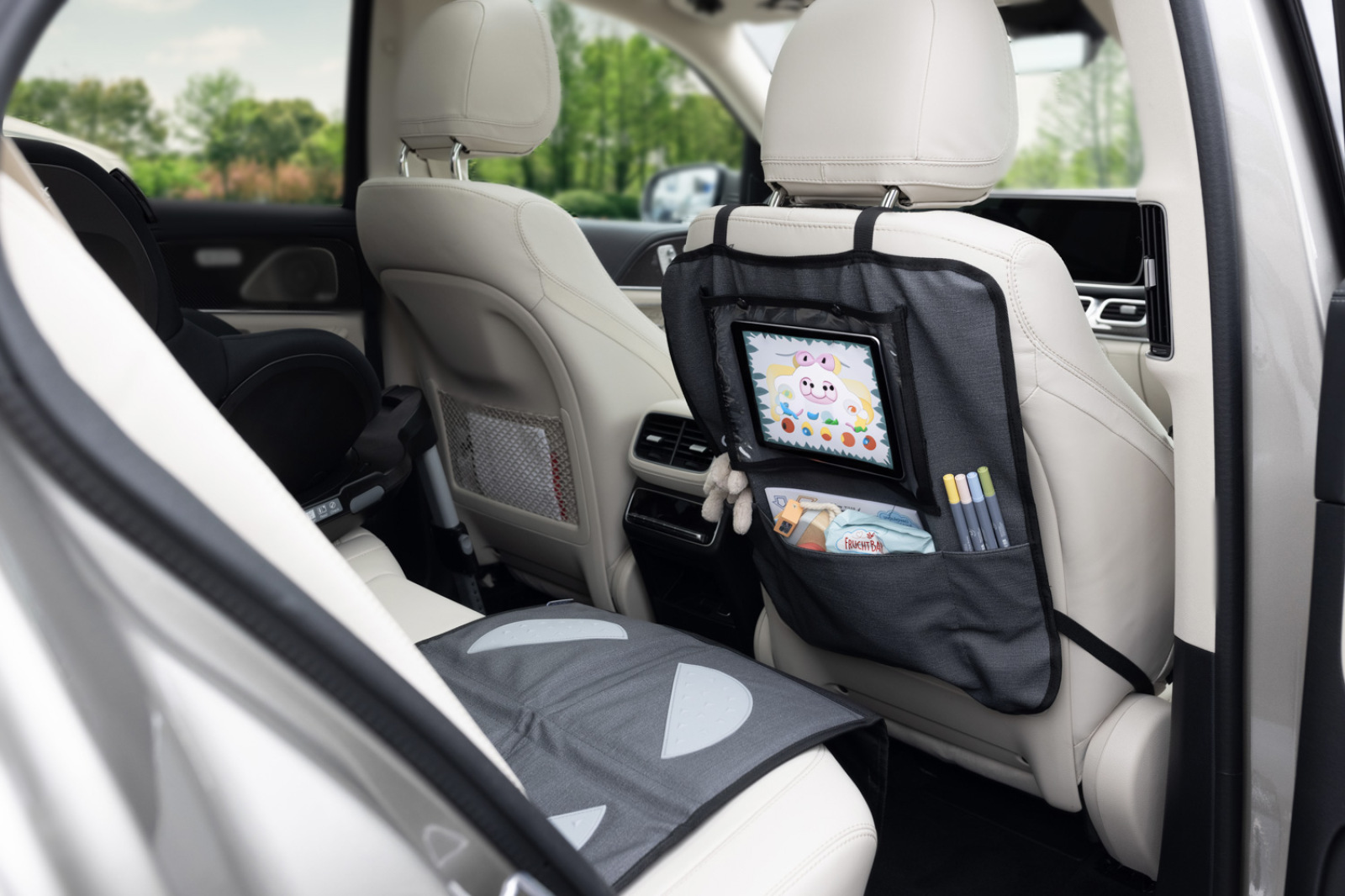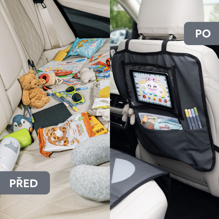 Ochrana sedadlá pod autosedačku s vreckom na tablet umývateľný, Grey