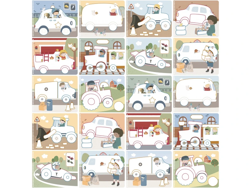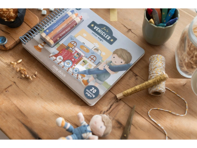 Nechajte svoje dieťa objavovať svet farieb s týmito kúzelnými omaľovánkami Little Dutch. Jemné ilustrácie s témou dopravných prostriedkov podnecujú k vyfarbovaniu a rozvíjajú detskú fantáziu. Praktický tvar pasteliek a pevné stránky umožňujú jednoduché a pohodlné maľovanie od 2 rokov.