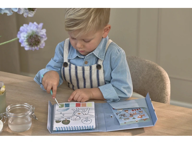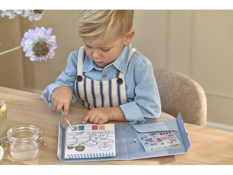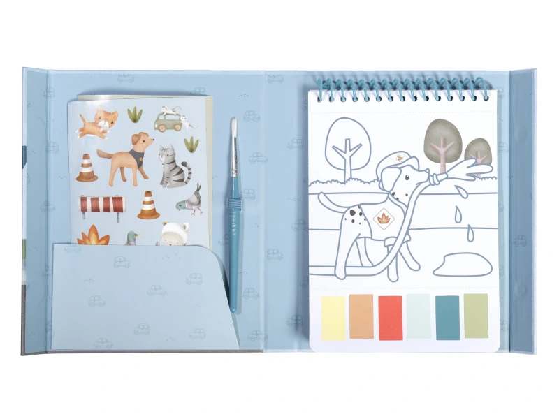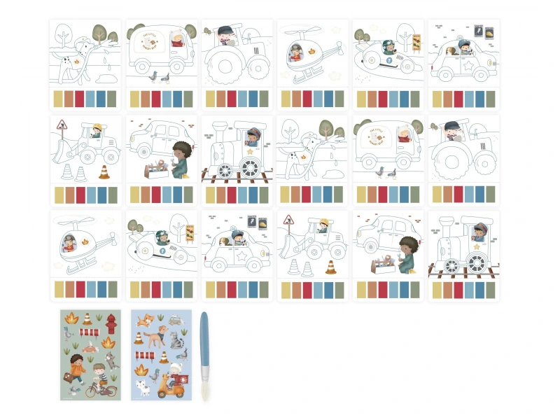 Krásne omaľovánky na silnom papieri obsahujú 18 stránok s jednoduchými obrázkami dopravných prostriedkov na vyfarbovanie. Každá stránka ponúka vlastnú paletu akvarelových farieb na vyfarbovanie štetcom, takže použitie je veľmi jednoduché. Pre väčšiu zábavu sú súčasťou aj dva archy krásnych farebných samolepiek na dotvorenie obrázkov.