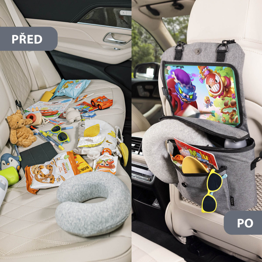 Raz a navždy skoncujte s neporiadkom na zadných sedadlách. S praktickým organizérom to bude hračka a navyše budete mať všetky veci, ktoré potrebujete pre deti, po ruke.