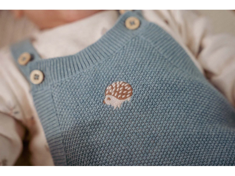 Overal z mäkkej a príjemnej pleteniny z organickej bavlny je ideálnou voľbou pre každodenné nosenie bábätka. Vďaka nadčasovému dizajnu s jemnou výšivkou ježka sa ľahko kombinuje s tričkom, body aj kardiganom. Praktické zapínanie na gombíky uľahčuje obliekanie aj prebaľovanie.