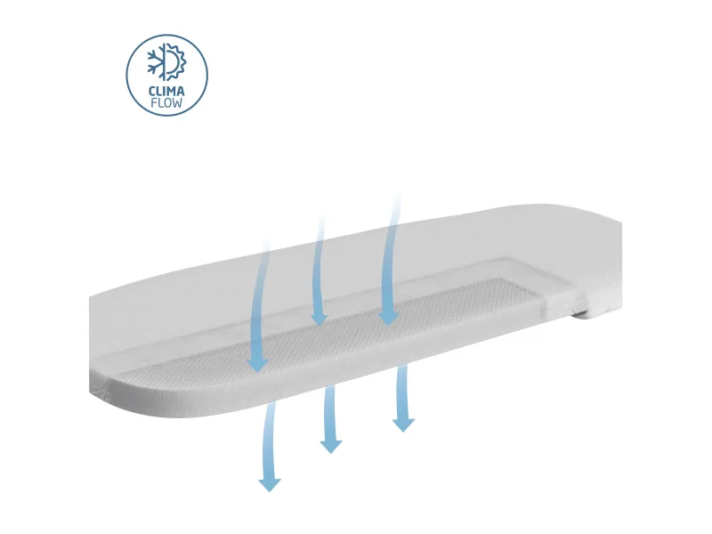 – priestranná vanička s obojstranným priedušným ClimaFlow matracom z pamäťovej peny