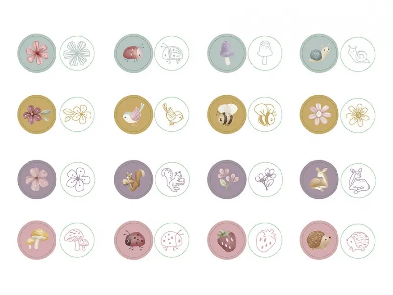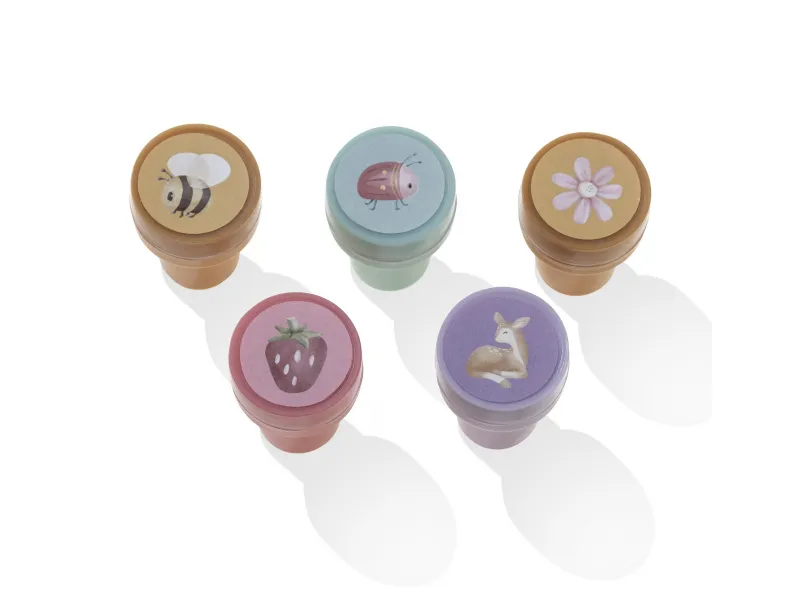 Pečiatky sú súčasťou dizajnovej kolekcie hračiek a doplnkov Little Dutch fairy Garden inšpirovanej životom na záhrade.