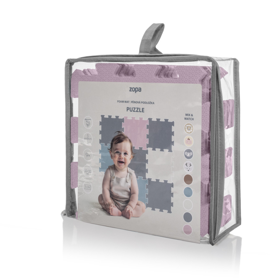 Penové puzzle je vyrobené z kvalitnej EVA peny. Slúži nielen ako podložka, ktorá zabezpečí pohodlie vďaka izolácii od chladu, ale aj ako praktická pomôcka pre prvé mesiace bábätka, keď poskytuje mäkkú oporu pri pásení koníčka alebo pri prvom lození.