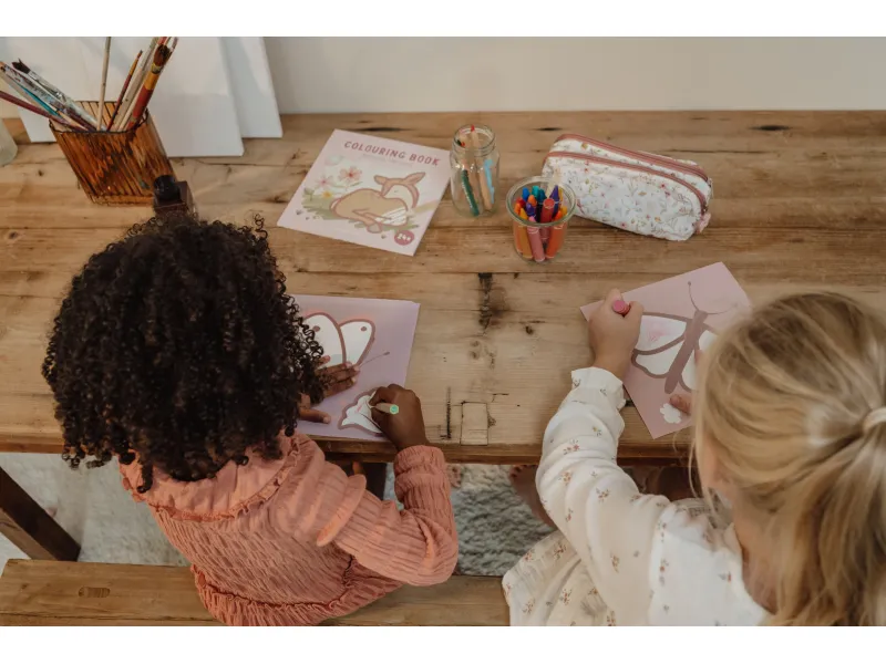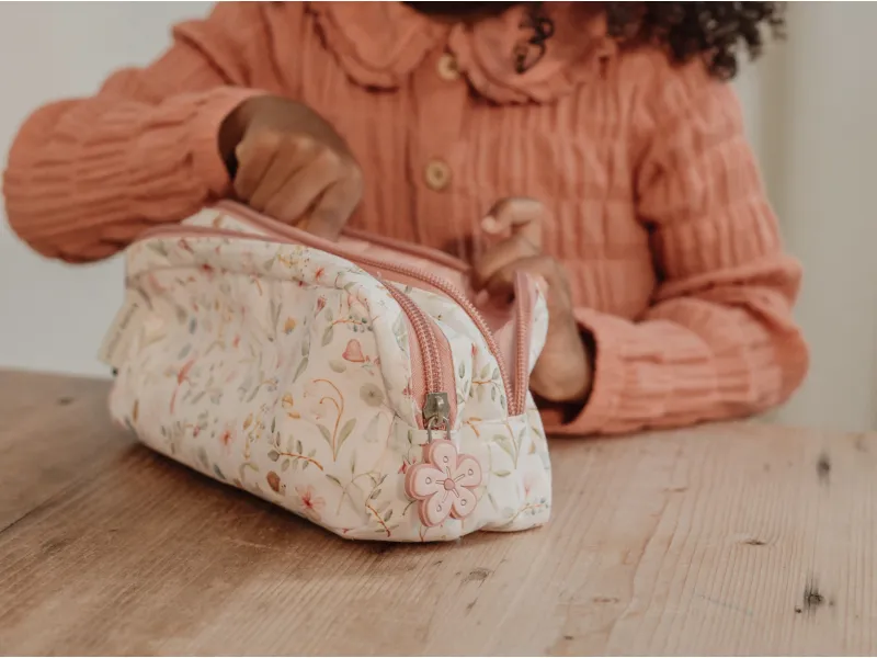 Puzdro na písacie a výtvarné potreby v krásnom prevedení s potlačou motívov zo života na záhrade má dve časti uzatvárateľné na zips na prehľadné uloženie výtvarných potrieb vašej malej umelkyne.