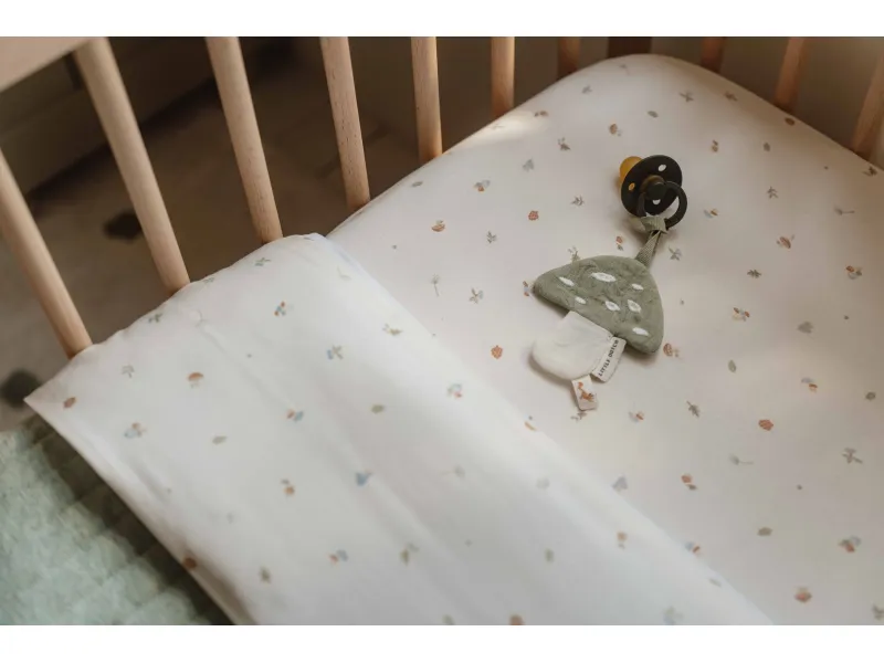 Napínacia plachta do kolísky alebo košíka je vyrobená z mäkkej 100 % organickej bavlny, ktorá je príjemná na dotyk a šetrná k citlivej pokožke novorodencov. Priedušný materiál pomáha vytvoriť pohodlné prostredie pre pokojný spánok bábätka. Dizajn z kolekcie Little Dutch Fairy Garden, inšpirovaný životom na záhrade, zároveň krásne doplní detskú postieľku aj interiér detskej izbičky.