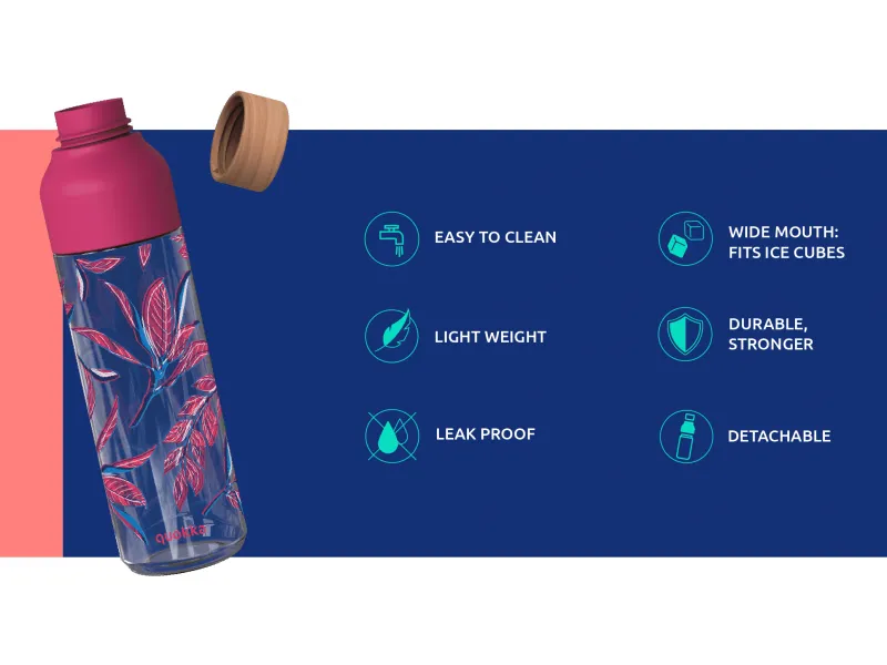Fľaša Quokka Ice Blooms je skvelou voľbou na pitný režim počas dňa – do školy, práce, na šport či výlety. Vďaka dvojitému otváraniu si môžete pripraviť aj osviežujúci nápoj s ľadom alebo ovocím. Veselý kvetový dizajn poteší deti aj dospelých a motivuje k pravidelnému pitiu.