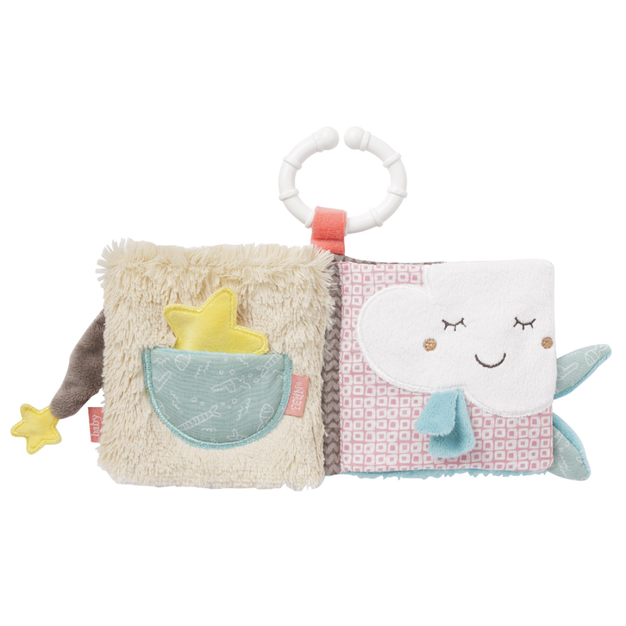 Interaktívná plyšová knižka, z príjemného materiálu s veselým dizajnom vyzýva deti k zapojeniu a prieskumu nových hmatových aj sluchových vnemov. Hmat, sluch aj zrak vašich detí bude s touto hračkou stimulovaný a deti sa rýchlo samy zabavia. Vďaka pastovému krúžku v tvare C, knižku ľahko kamkoľvek pripojíte.