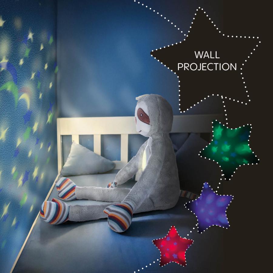 Hebký plyšový uspávačik s projektorom pre bábätká od narodenia premení večerné zaspávanie na príjemný a upokojujúci rituál. Stačí jedno stlačenie a izbu zaplní jemné svetlo, farebné projekcie a harmonické tóny, ktoré pomáhajú dieťaťu cítiť sa bezpečne. Uspávačik sa rýchlo stane verným spoločníkom na noc aj počas dňa.