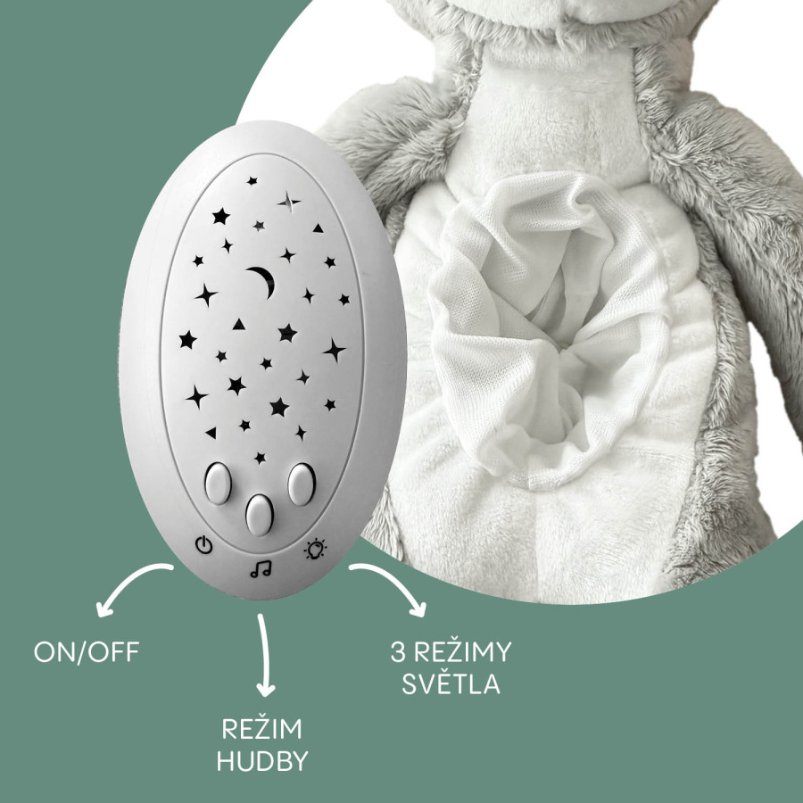 Uspávačik je nielen hebký na dotyk, ale aj bezpečný pre najmenších. Stane sa tak nerozlučným spoločníkom nielen pri večernom uspávaní, ale aj počas dňa, keď prinesie pocit blízkosti.