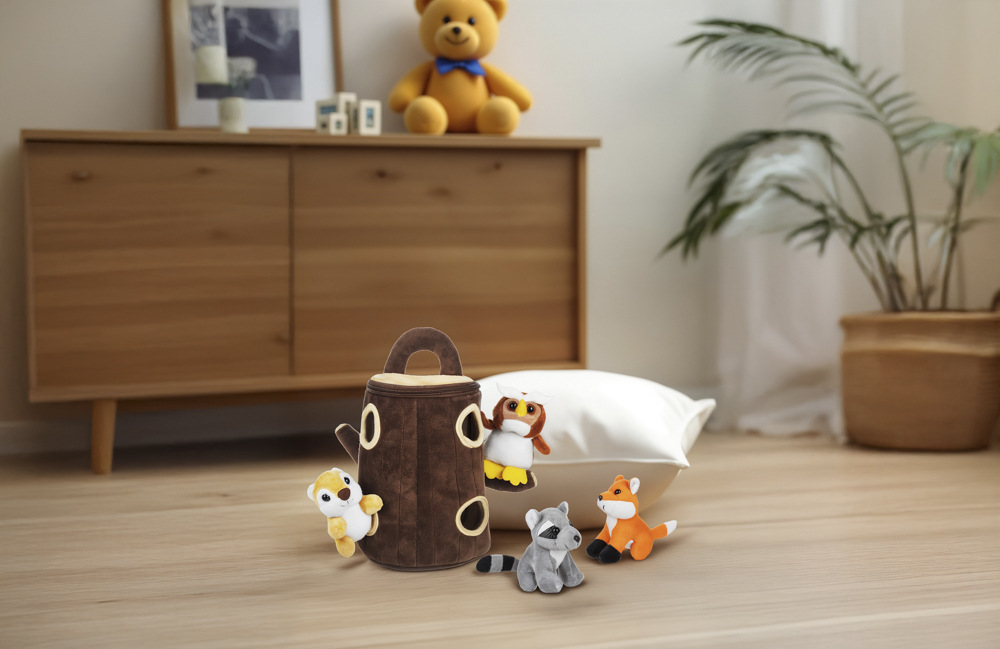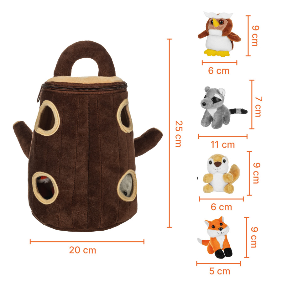 Objavte svet zábavy a učenia s touto plyšovou sadou pre deti. Každý tematický domček ukrýva štyroch milých zvieracích kamarátov a slúži ako hrací kufrík aj rozvojová hračka, ktorá podporuje predstavivosť a jemnú motoriku.