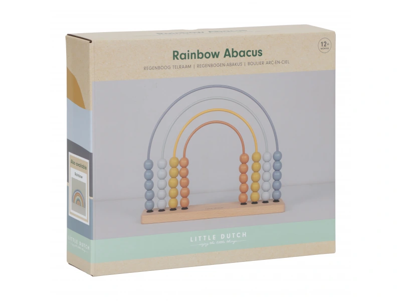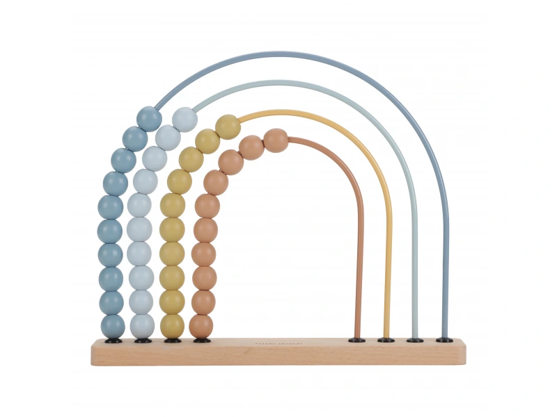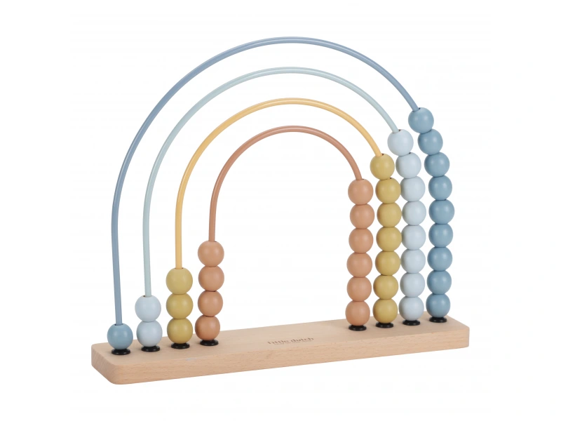 S dreveným počítadlom Little Dutch Dúha sa vaše dieťa naučí počítať hravou formou! Jemné pastelové farby a tvar dúhy zaujmú každé batoľa, ktoré si pri posúvaní korálikov trénuje koordináciu, pozornosť a jemnú motoriku. Keď deti trochu vyrastú, počítadlo im pomáha rozpoznávať farby a rozvíjať základné matematické zručnosti.