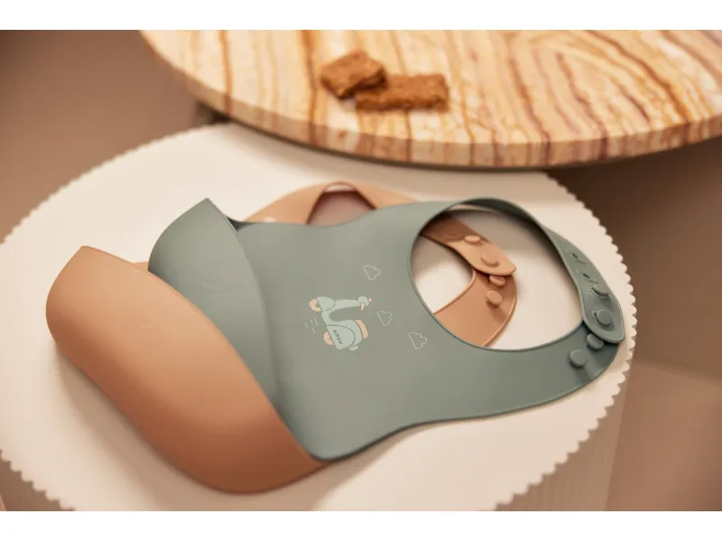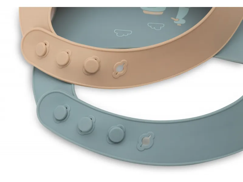 Bryndák z jemného, pružného silikonu s krásným potiskem je vybaven širokou kapsou pro zachycení drobečků i kapek. Dokonale ochrání oblečení dítěte již od prvních pokusů o samostatné stolování. Zapínání za krkem umožňuje snadno upravit velikost kolem krku.