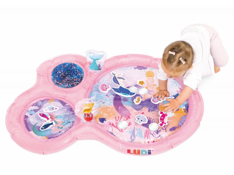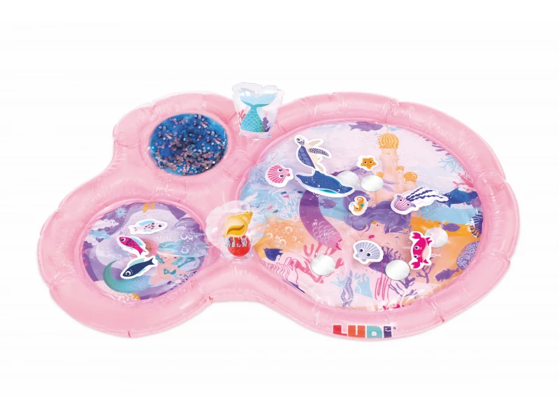 Interaktivní podložka na hraní naplněná vodou připomíná skutečný podmořský svět s vodními živočichy. Figurky mořských tvorů se uvnitř ve vodě začnou pohybovat, kdykoli dítě na podložku sáhne rukou. Jednotlivé části podložky jsou propojené, takže když se dítě o podložku opře, voda proudí mezi jednotlivými částmi. Na nafukovacích okrajích jsou umístěna dvě nafukovací madla, která při zmáčknutí pískají a cinkají.