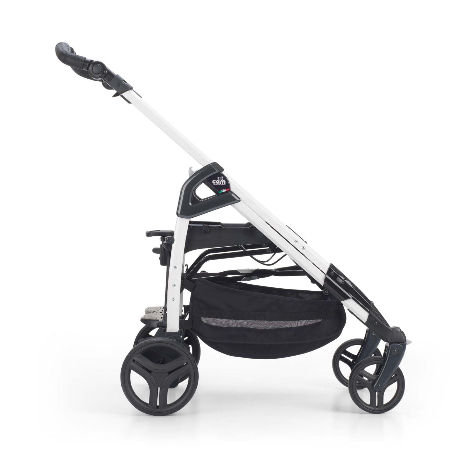 Podvozok ku kočíku je dodávaný v troch farebných variantoch: BIANCO Carbonia, NERO Carbonia a ALLMINIO spazzolato. Výškovo nastaviteľná rukoväť s detailom ručného prešívanie v eko koži. Odpružená kolesá s guličkovými ložiskami. Priestranný nákupný košík. Jednoduché skladanie podvozku a kompaktné rozmery pri zložení uľahčí manipuláciu.