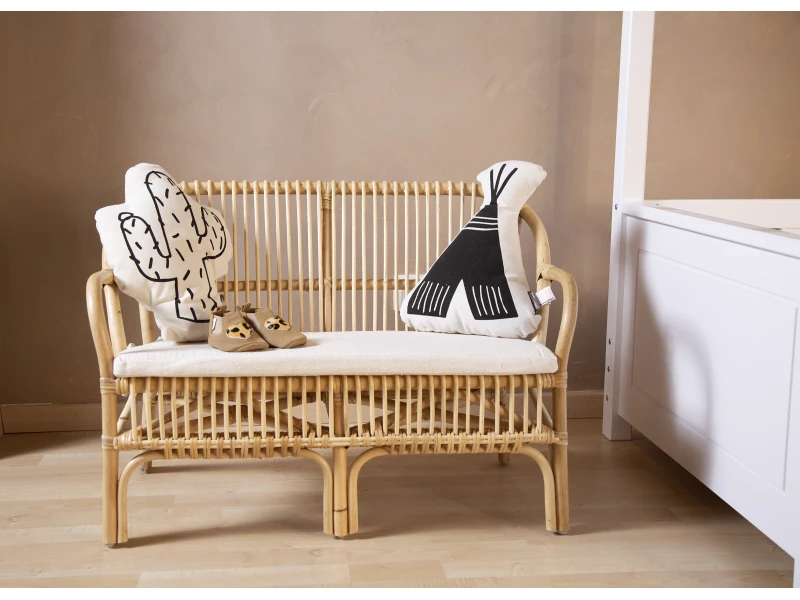 Táto detská ratanová pohovka kombinuje prírodný dizajn, stabilitu a maximálne pohodlie, vďaka čomu sa stane obľúbeným miestom na sedenie aj oddych. Mäkká sedacia podložka a vysoká opierka chrbta zabezpečujú príjemné pohodlie pri hraní, čítaní alebo sledovaní rozprávok. Pohovka krásne doplní detskú izbu aj obývaciu časť domácnosti.