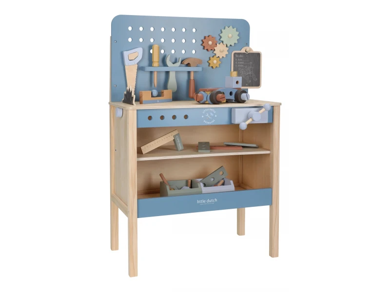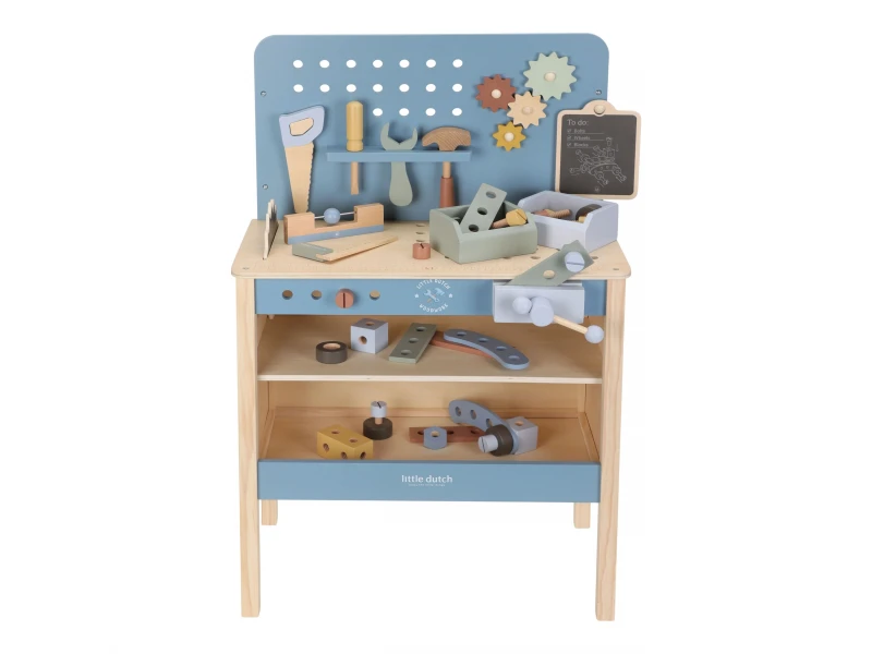 Tento drevený pracovný ponk je ideálnou hračkou pre deti, ktoré rady napodobňujú dospelých a s nadšením tvoria vlastné projekty. Ponúka bezpečný a podnetný priestor na hru, kde si dieťa môže skladať, opravovať a objavovať svet náradia hravou formou. Vďaka kvalitnému spracovaniu a nadčasovému dizajnu značky Little Dutch je vhodný do každej detskej izby a podporuje prirodzený rozvoj zručností už od útleho veku.