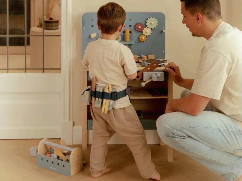 Pozriete si aj detské drevené hračky, ktoré rozvíjajú fantáziu, logické myslenie a motorické schopnosti detí a krásne doplnia tvorivé hry pri pracovnom ponku.