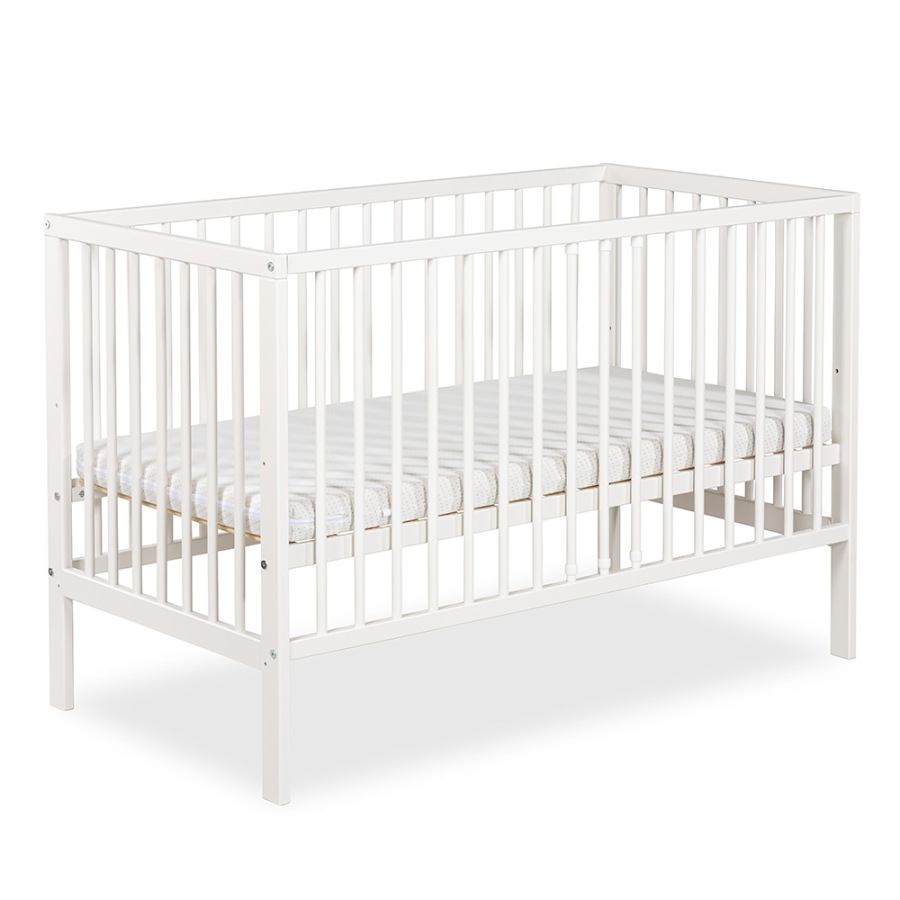 Detská postieľka FRANIA v rozmere 120 × 60 cm je vyrobená z kvalitného borovicového dreva, ktoré vyniká pevnosťou, dlhou životnosťou a prírodným charakterom. V bielom prevedení pôsobí jemne, čisto a ľahko sa prispôsobí každému štýlu detskej izby. Vďaka nastaviteľnej výške dna, vyberateľným priečkam a možnosti doplnenia bariérky sa postieľka flexibilne prispôsobuje potrebám rastúceho dieťaťa.