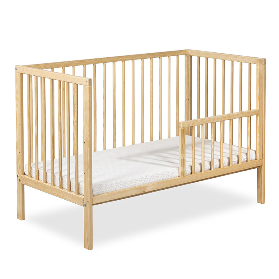 Detská postieľka FRANIA v rozmere 120 × 60 cm je ideálnou voľbou pre rodičov, ktorí hľadajú prírodné, bezpečné a nadčasové riešenie pre spánok bábätka. Je vyrobená z kvalitného borovicového dreva s teplým odtieňom, ktorý vytvára v detskej izbe pokojné a útulné prostredie. Vďaka nastaviteľnej výške dna a vyberateľným priečkam sa postieľka prirodzene prispôsobuje rastu dieťaťa.