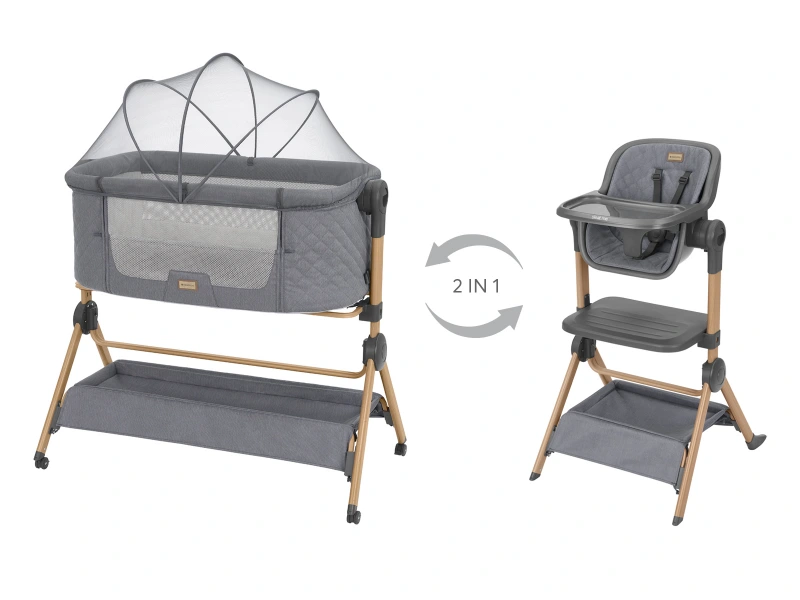 Postieľka a stolička 2v1 KikkaBoo Sleat Me ponúka praktické a elegantné riešenie pre moderných rodičov. Spoľahlivo poslúži najskôr ako pohodlná postieľka pre novorodenca a neskôr sa premení na jedálenskú stoličku pre batoľa. Vďaka kombinácii dreveného vzhľadu a ľahkej hliníkovej konštrukcie sa hodí do každého interiéru, pričom rastie spolu s vaším dieťaťom od narodenia až do približne 3 rokov.