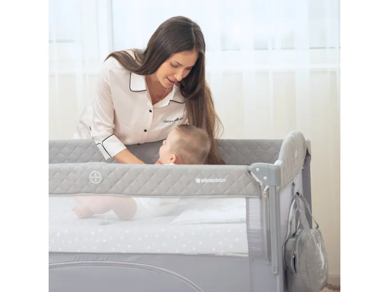 Cestovná postieľka KikkaBoo Milky Way je praktickým riešením pre rodičov, ktorí chcú mať bábätko bezpečne nablízku počas dňa aj noci. Vďaka dvom úrovniam uloženia matraca sa prispôsobí veku dieťaťa od narodenia až do 36 mesiacov. Možnosť stiahnutia bočnice umožňuje pohodlné pristavenie k posteli rodičov a podporuje pokojný spoločný spánok.