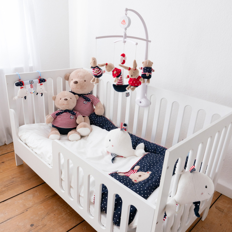 Decentná vzory a farby obliečky umožňujú, aby sa detská postieľka stala skutočným pútačom detskej izby.
