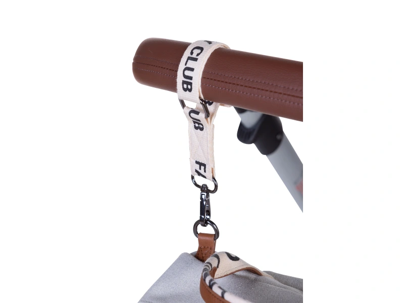 Áno, súčasťou sú špeciálne úchyty na bezpečné zavesenie na rukoväť kočíka.