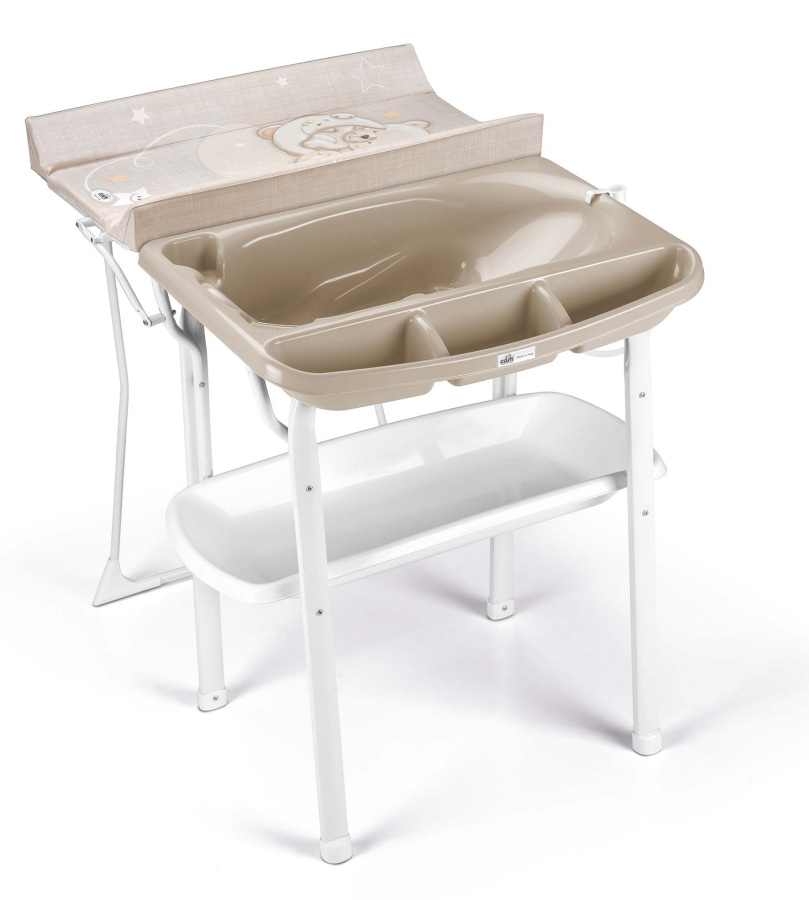 Prebaľovací stôl je ideálnym riešením pre pohodlnejšiu starostlivosť o dieťa. Inovatívne riešený prebaľovací pult uľahčuje celkovú manipuláciu s dieťaťom vďaka tomu, že je umiestnený rovno vedľa vaničky, takže po kúpeli nie je nutné dieťa pridržiavať v náručí a jednou rukou inštalovať pult, ako býva obvyklé. Vanička je šikovne vytvarovaná tak, že obsahuje dve sedenia s anatomickými protišmykovými výstužami. Jedno je naklonené pre deti 0–6 mesiace a druhé predstavuje sedadlo s opierkami pre deti od 6–12 mesiacov.