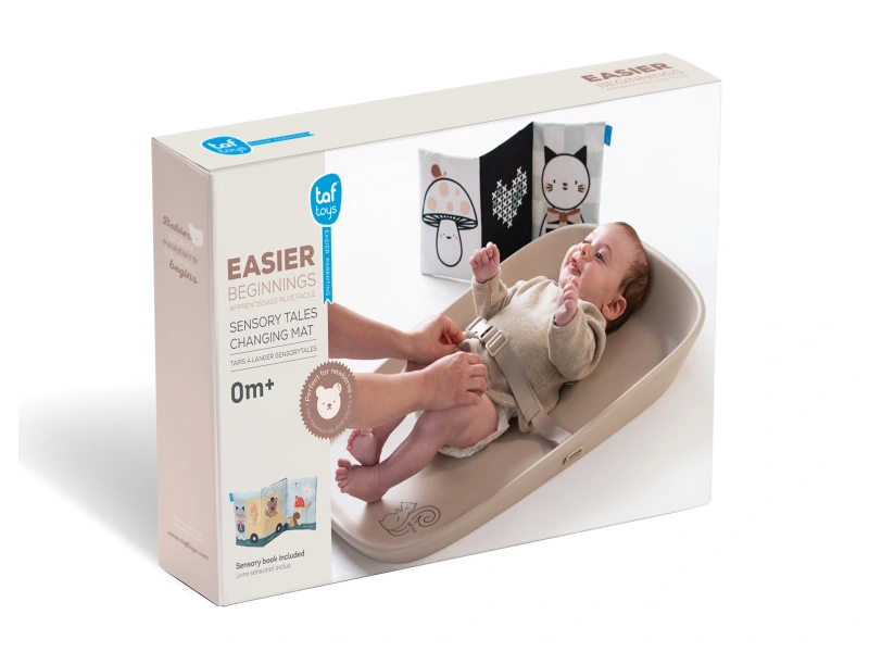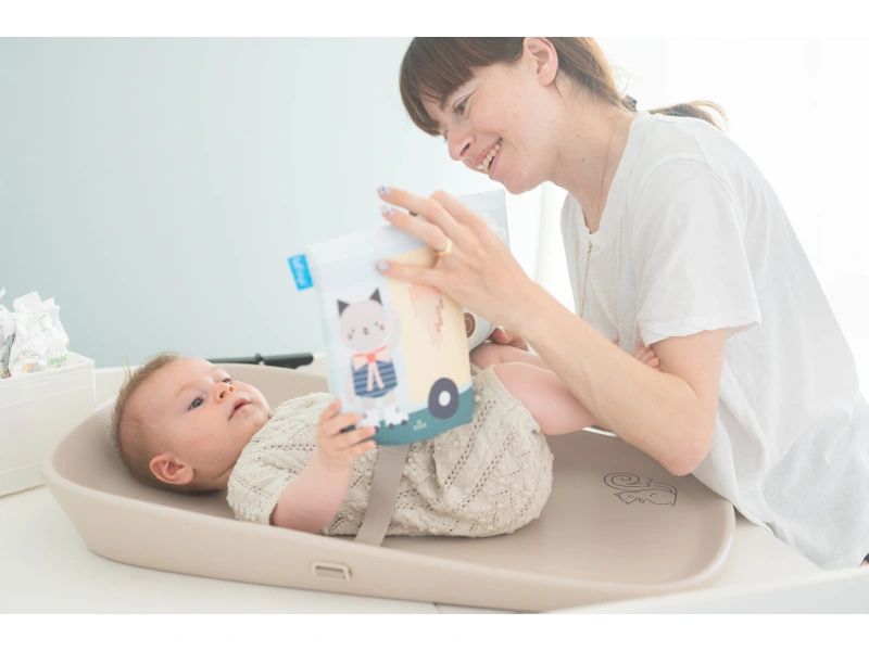 Přebalovací podložka Taf Toys mění každé přebalování v příjemný okamžik pro miminko i pro rodiče. Podložka je vhodná nejen na přebalování, ale také pro hru na bříšku nebo jako hrací podložka na cestách. Součástí balení je textilní knížka pro zabavení miminka během přebalování i pro hru na bříšku.
