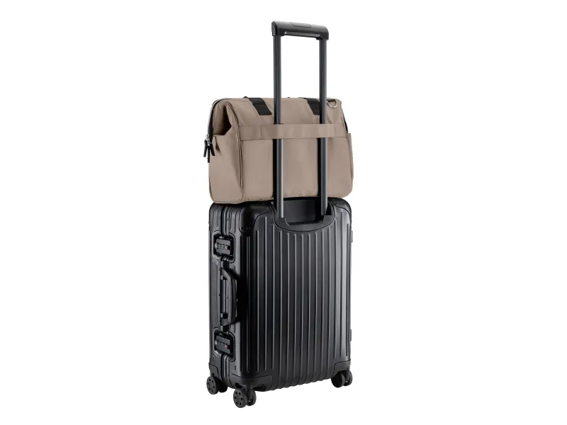 Držadlá umožňujú pohodlné nosenie v ruke, súčasťou tašky je aj ramenný popruh pre nosenie cez rameno. Úchyty na zadnej strane umožňujú pripevnenie k rukoväti kufra.