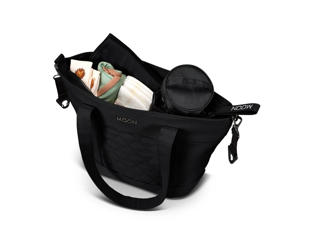 Prebaľovacia taška Moon je ideálna voľba pre rodičov, ktorí hľadajú kombináciu elegancie, praktickosti a odolnosti. Vďaka modernému dizajnu a premyslenému vnútornému usporiadaniu sa stane neoceniteľným pomocníkom na cestách s bábätkom. Poskytuje dostatok priestoru na všetky nevyhnutnosti – od plienok až po fľaštičky – a zároveň pôsobí vkusne a moderne pri každom kočíku.