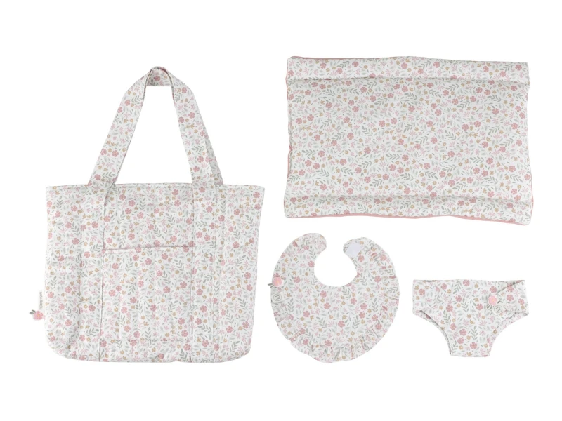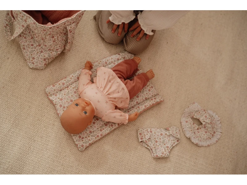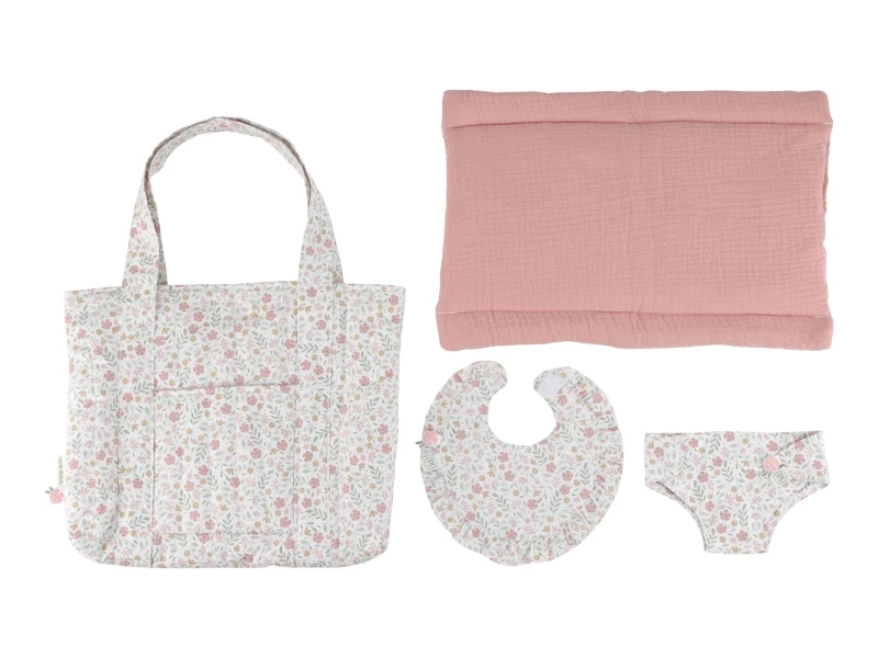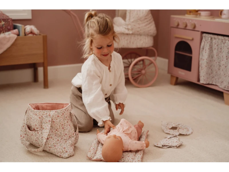 Prebaľovacia taška Little Dutch Soft Flowers je ideálnym doplnkom pre hru na mamičku. Obsahuje všetko potrebné, aby sa deti mohli starať o svoje bábiky alebo plyšových kamarátov – od plienky až po podložku na prebaľovanie. Ľahké prevedenie je prispôsobené detským rúčkam a krásny kvetinový dizajn ladí s ďalšími doplnkami kolekcie Soft Flowers.