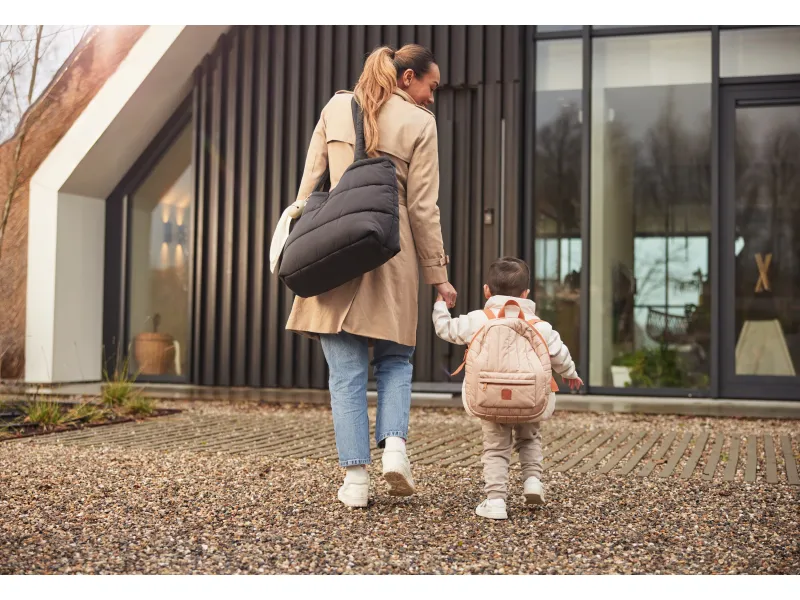 Přebalovací taška z příjemného prošívaného materiálu s výplní a s originální puntíkovanou podšívkou nabízí množství vnitřních i vnějších kapes pro přehledné uspořádání všeho potřebného na procházkách a výletech s vaším dítětem. Součástí tašky je i praktická přebalovací podložka. Ramenní popruh i držadla umožňují nošení přes rameno, v ruce i zavěšení na rukojeť kočárku. Taška se uzavírá na zip.