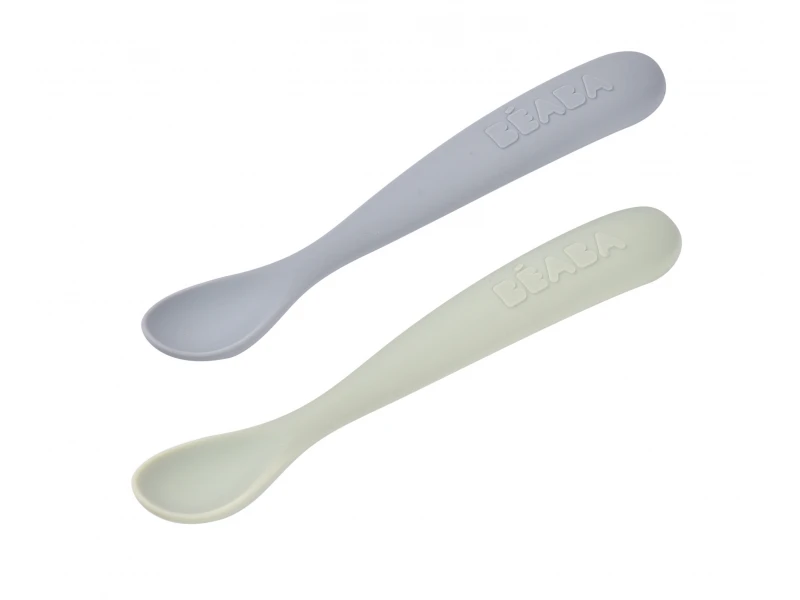 Silikónové lyžičky Beaba pre najmenších sú šetrné k citlivým detským ďasnám a navrhnuté pre hladký prechod z cumlíka na lyžičku. Dlhá rukoväť uľahčuje rodičovi naberanie z misky aj pohára bez zašpinenia rúk. Praktické puzdro umožňuje hygienické prenášanie lyžičiek napr. v prebaľovacej taške.