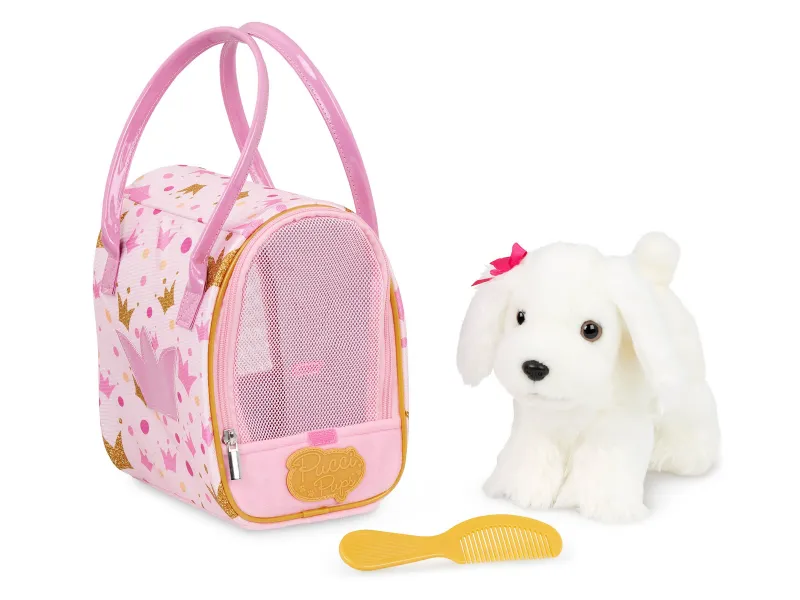 Rozkošné plyšové šteniatko v praktickej taške je ideálny spoločník na maznanie aj hranie doma či na prechádzke. Vďaka priehľadnej sieťovinovej prednej stene má šteniatko výhľad na svet a dieťa radosť z prenášania svojho miláčika kamkoľvek. Hračka podporuje fantáziu, jemnú motoriku a starostlivosť o „vlastné“ zvieratko.