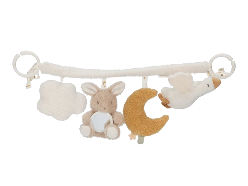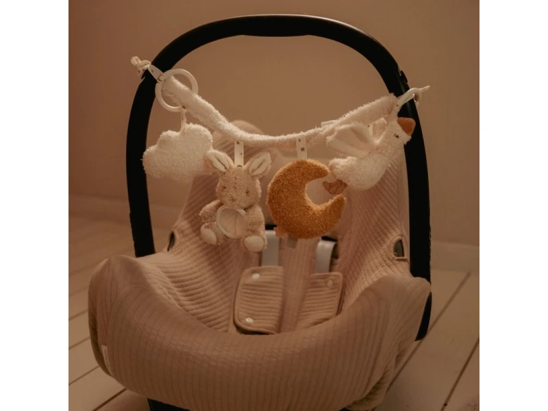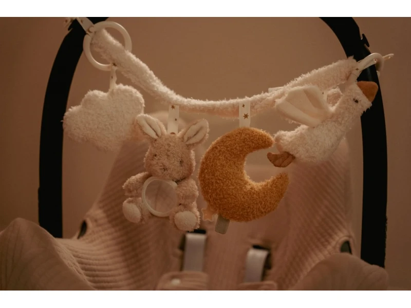 Táto textilná reťaz Little Dutch Newborn Naturals prináša zábavu a stimuly pre vaše bábätko počas každej jazdy v kočíku alebo autosedačke. Mäkké plyšové hračky sú príjemné na dotyk, bezpečné a vizuálne upokojujúce, podporujúce zmyslový rozvoj dieťaťa. Jednoduché pripevnenie pomocou pružných krúžkov umožňuje rýchle nasadenie a stabilné uchytenie.
