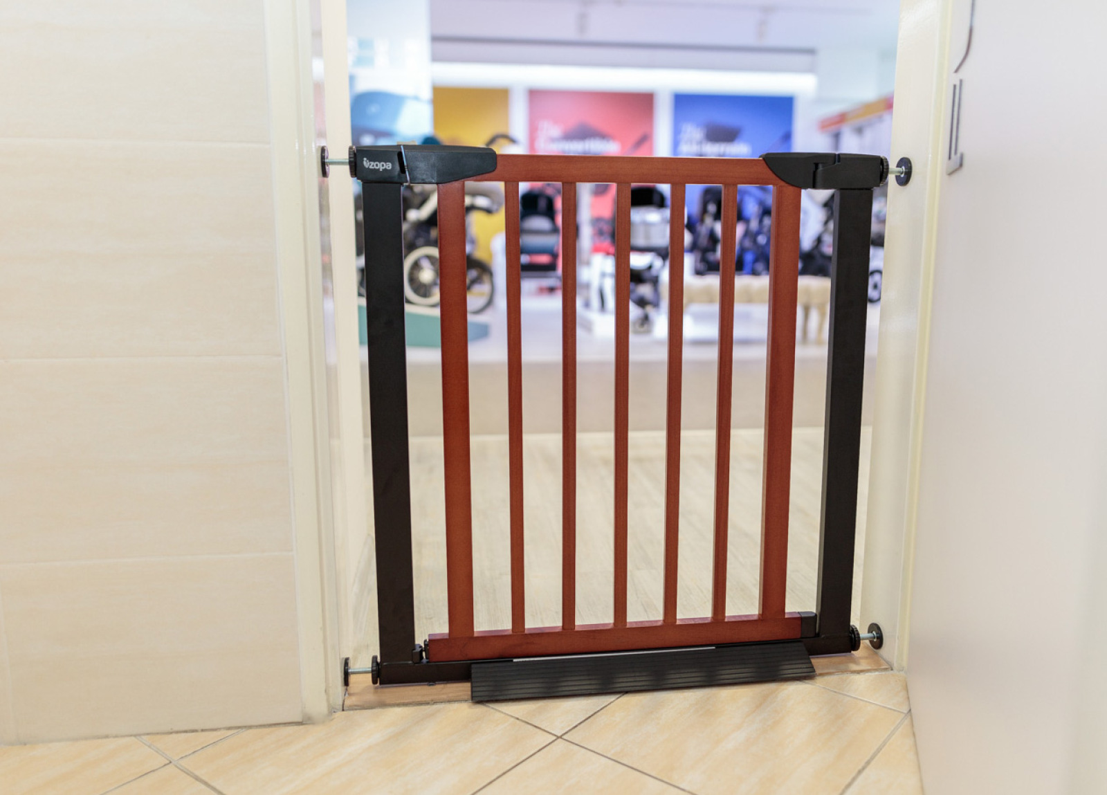 Pevný kovový rám v tvare písmena ,, U "umožňuje jednoduchú montáž rozoprením. Poskytuje mimoriadne široký priechod, ktorý neobmedzuje v pohybe. Zábranu možno ľahko namontovať bez vŕtania. Zábrana je určená pre otvory od 75cm do 82cm, pomocou rozšírenia, ktoré je súčasťou balenia, možno zábranu umiestniť do otvorov až do 96cm. Rampa, ktorá je taktiež súčasťou balenia, uľahčí priechod cez zábranu. Jednoduché otváranie jednou rukou uľahčí manipuláciu. Kovová konštrukcia v čiernej farbe v kombinácii s čerešňovým drevom povyšuje zábranu na dizajnový prvok. Spĺňa normu EN 1930: 2011 a ASTM F1004-13 a je vhodná pre použitie u detí do 24 mesiacov.