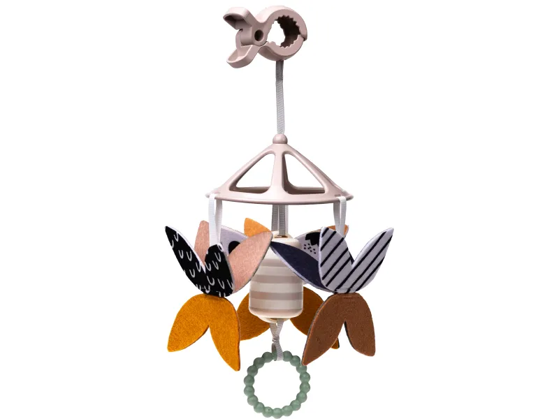 - Motýlia zvonkohra: Kolotoč so zvončekom a motýliky v kontrastných farbách ponúka vizuálnu stimuláciu a jemné zvukové podnety, čím podporuje emočný rozvoj a učenie o príčine a následku.