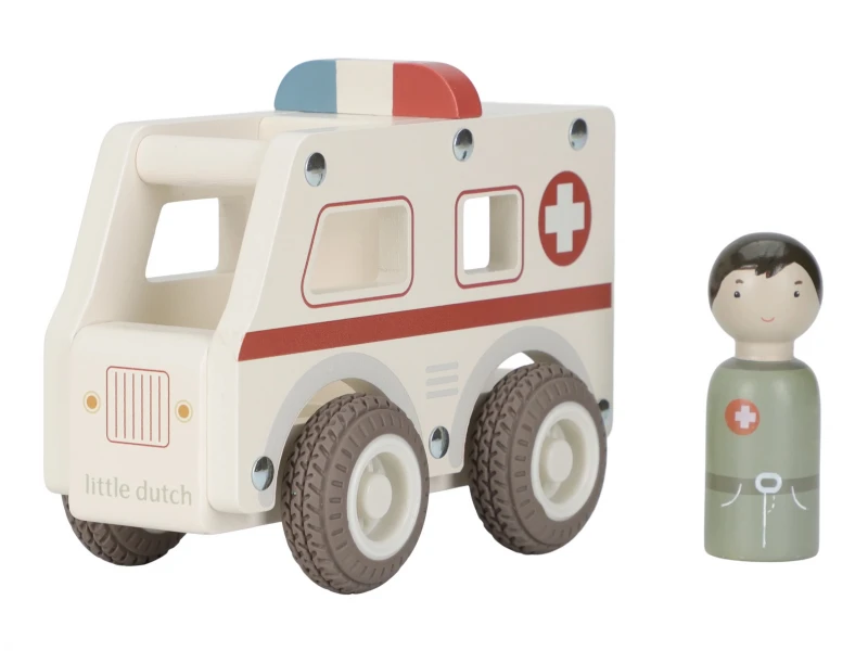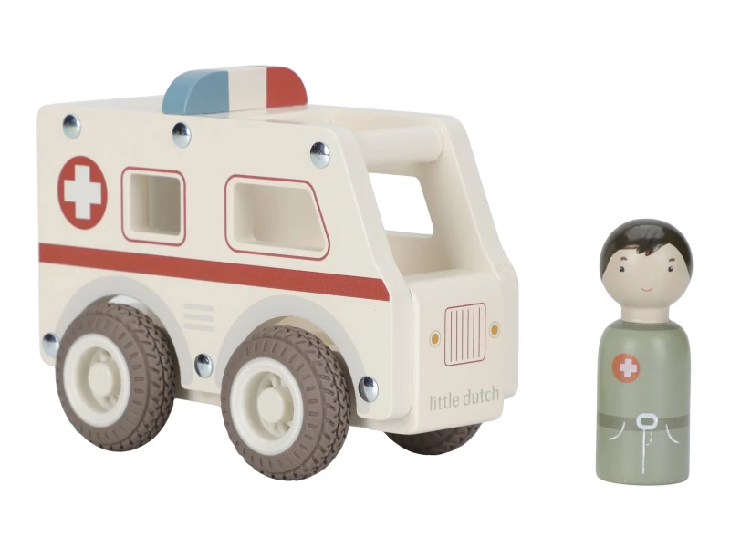 Drevená sanitka značky Little Dutch prináša do detskej izby autentický dopravný prostriedok, s ktorým si vaše dieťa môže vytvárať vlastné záchranárske príbehy. S realistickými detailmi, gumovými kolieskami a otvoreným dizajnom sa ľahko drží aj malými rukami. Hra na doktora či záchranára podporuje empatiu, predstavivosť a jemnú motoriku – ideálna pre deti, ktoré milujú interaktívne a kreatívne hry.