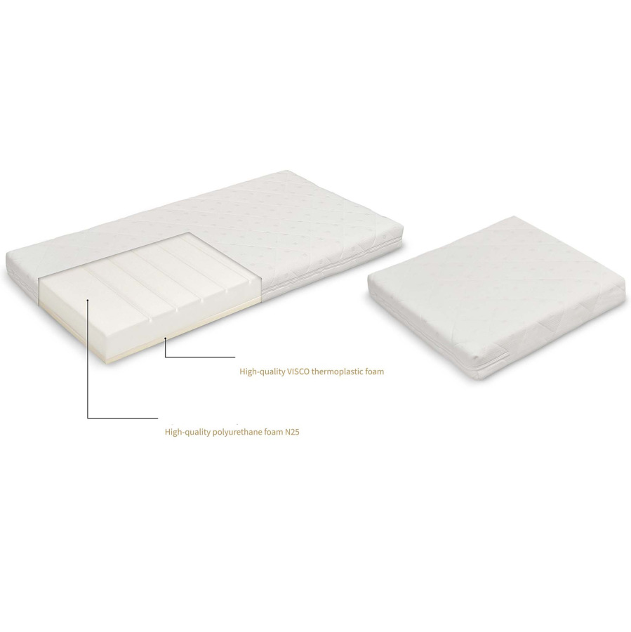 K rastúcej postieľke Kompakt je možné dokúpiť praktický set dvoj-matracov, ktorý zabezpečí maximálne pohodlie pre vaše dieťa od narodenia až po väčší vek. Matrace sú navrhnuté tak, aby presne sedeli do jednotlivých častí postieľky a podporovali zdravý spánok bábätka.