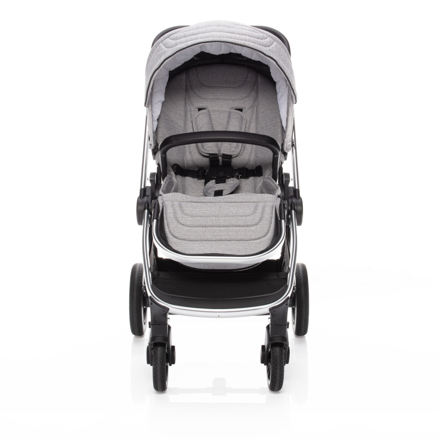 Pokiaľ ste vyššieho vzrastu, pri kočíku isto oceníte výškovo nastaviteľnú rukoväť, ktorá je, rovnako ako hrazda, vyrobená z eko-kože. Čo ešte viac zvýrazňuje moderný vzhľad kočíka. Pre jednoduchšiu manipuláciu môžete hrazdu šikovne odopnúť a odkloniť nabok. Tým si uľahčíte vkladanie dieťaťa do kočíka. Samozrejmosťou je tiež bezpečné pripútanie 5-bodovým bezpečnostným pásom a na zaistenie kočíka samozrejme nechýba ani centrálna brzda.