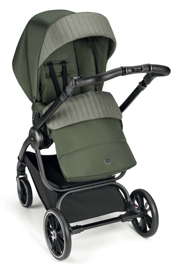 Podvozok Techno má odpruženú konštrukciu a praktické prídavné zariadenia, ktoré sa dajú ľahko nasadiť v oboch smeroch. O pohodlnú jazdu sa postarajú veľké zadné a predné kolesá s aretáciou. Navyše majú všetky ľahkú konštrukciu - sú vyrobené z materiálu EVA. Ich veľkou výhodou je, že sa nedajú prepichnúť. Takže sa na ne môžete stopercentne spoľahnúť, keď ste na cestách. Výškovo nastaviteľná rukoväť s ručným prešívaním z ekokože dopĺňa tento štýlový a praktický kočík. Počas jázd alebo výletov oceníte priestranný nákupný košík, do ktorého môžete umiestniť potraviny alebo všetky potrebné veci. Podvozok kočíka sa navyše ľahko skladá. V zloženom stave je veľmi kompaktný, samostatne stojí a vďaka hmotnosti len 7 kg sa s ním ľahko manipuluje.