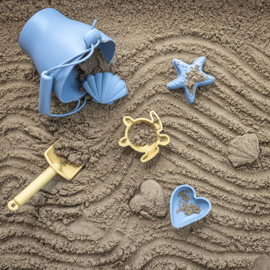 Silikónové bábiky do piesku v sade s lopatkou a vedierkom sú