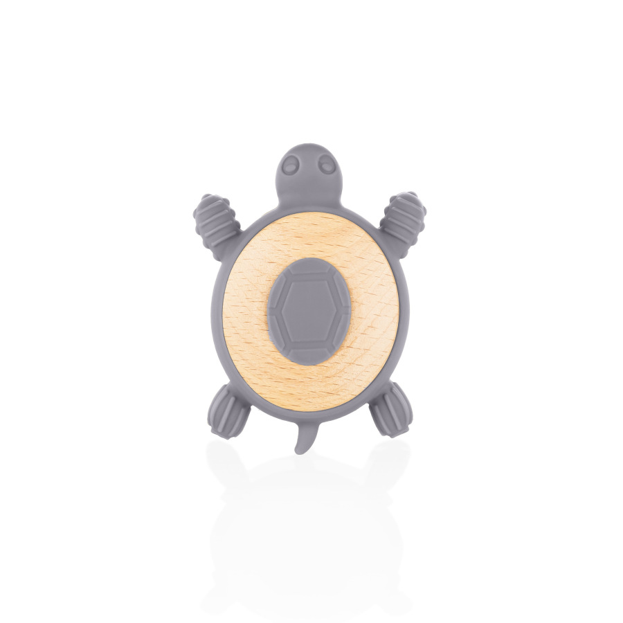 Silikónové drevené hryzátko Turtle, Dove Grey