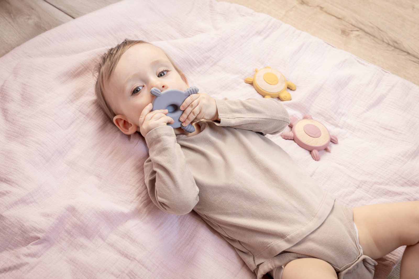 Vaše dieťatko si okamžite zamiluje naše roztomilé hryzátko v tvare korytnačky, ktoré spája prírodné drevo s bezpečným silikónom. Ideálny spoločník na obdobie prerezávania zúbkov, ktorý poskytuje úľavu od bolesti a súčasne rozvíja zmyslové vnímanie vášho bábätka.